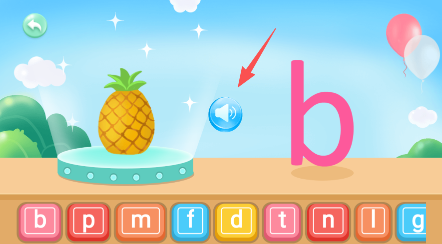 2、支持发音功能,点击发音按钮可听字母读音,帮助宝宝掌握字母发音。