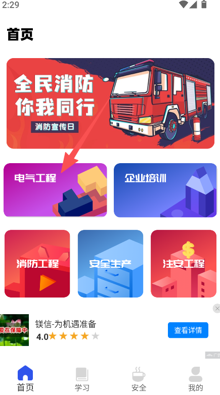 1、具备多板块选择功能,可选择电气工程、消防工程等板块,精准定位备考领域,开启专项刷题。