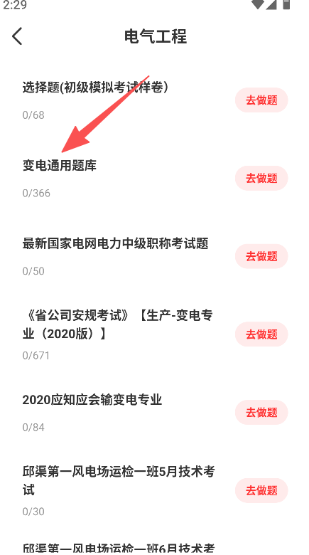 2、选择变电通用题库,点击去做题,进入题目详情。