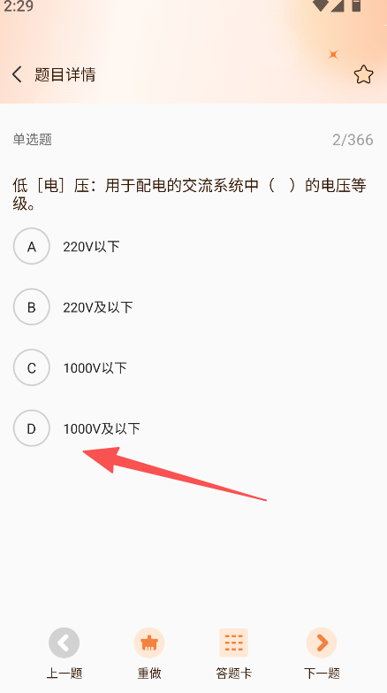 2、功能按钮实用,上一题、下一题、重做等功能齐全,刷题过程可灵活操作,提升刷题效率。