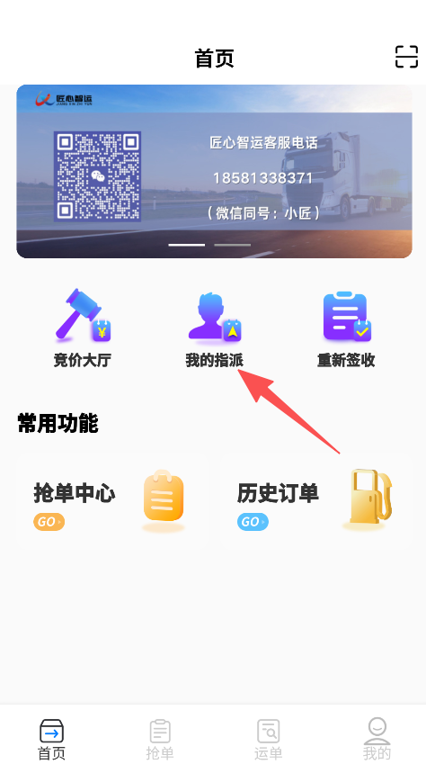 1、打开《匠心智运司机版》,点击我的指派,进入运单管理板块。
