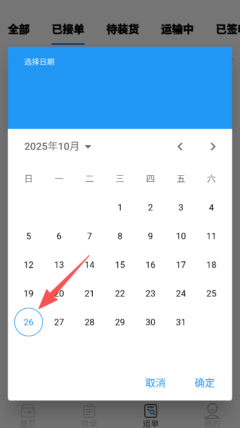 3、拥有日期选择功能,选定日期可明确运单时间范围,方便司机规划货运时间与行程。