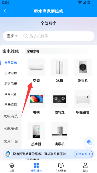 2、接着在家电维修分类中找到对应的故障类型,这个步骤仿佛在给罢工的电器挂上正确的急诊科室号牌。