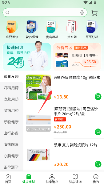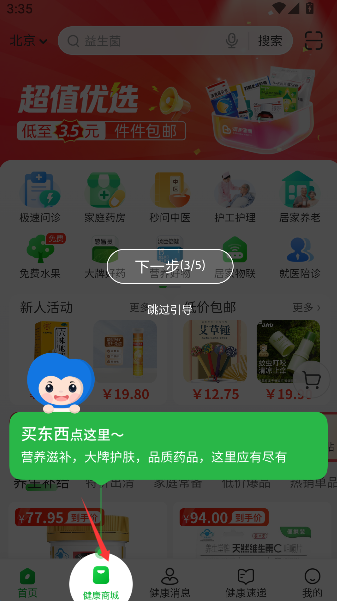 1、轻轻点开页面底部的健康商城,就像推开一家24小时营业的魔法药店,各种药品在货架上向你招手。