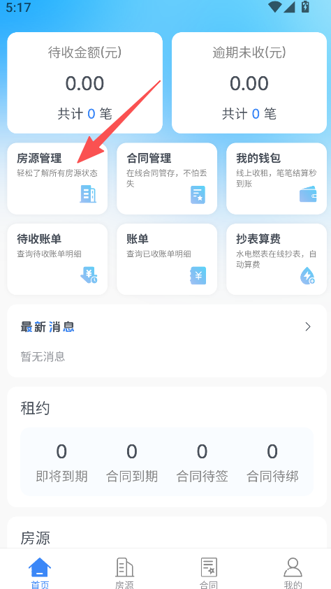 1、打开《筑小寓》,点击房源管理,进入房源板块。