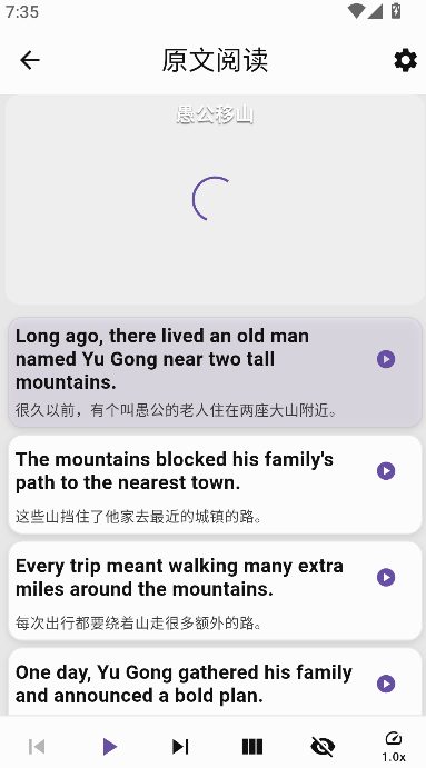 3、点击"原文阅读"选项,即可进入纯净的文章全文显示页面,开始进行阅读训练。