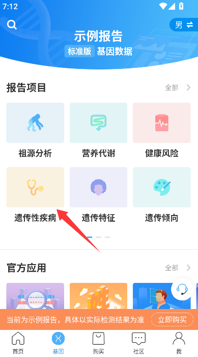 1、找到并点击"基因报告"或类似功能入口,进入基因分析报告的总览分类页面。