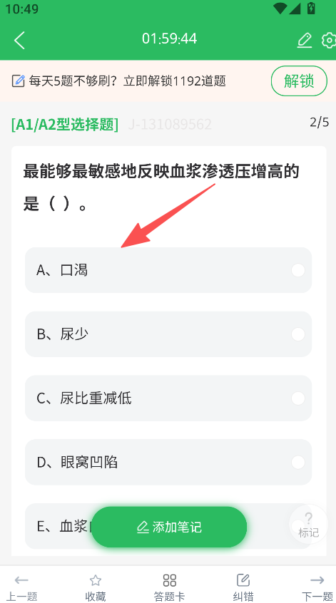 3、在题目界面选择答案,完成外科主治考试题目练习。