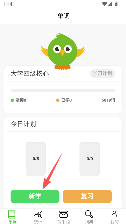 2、学习模式清晰,分新学、复习板块,学习流程有条理,助力用户系统提升词汇量。