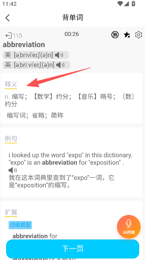 3、内容呈现全面,单词学习包含释义、例句、词组搭配,词汇知识传递深入,帮助用户透彻理解单词。