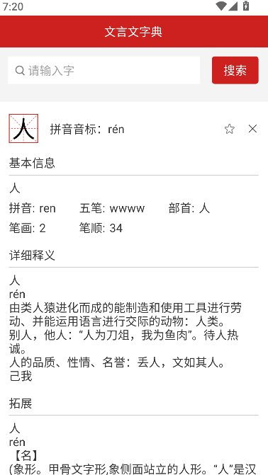 3、在汉字详情页面中,即可全面查看关于该字的所有详细信息。