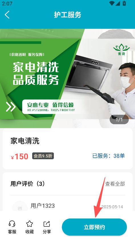 2、选择家电清洗,查看服务详情与用户评价。