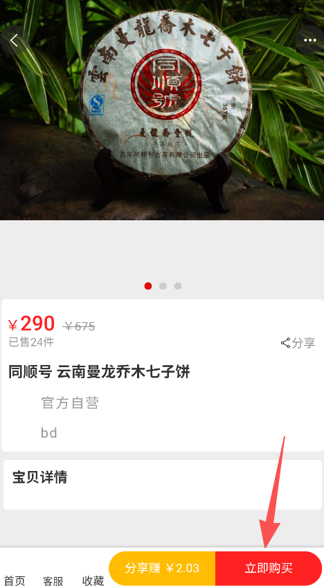 2、选择心仪商品,如云南曼龙乔木七子饼,查看商品详情。