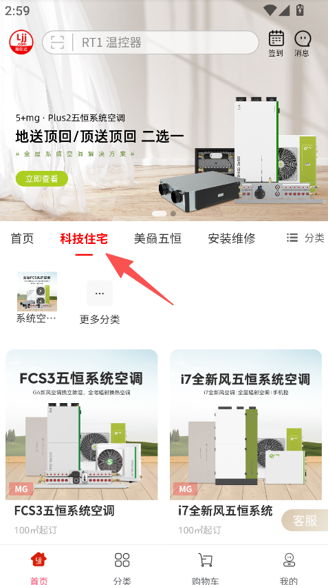 3、板块划分清晰,科技住宅、美盈五恒等功能明确,购物目标明确,操作无门槛。