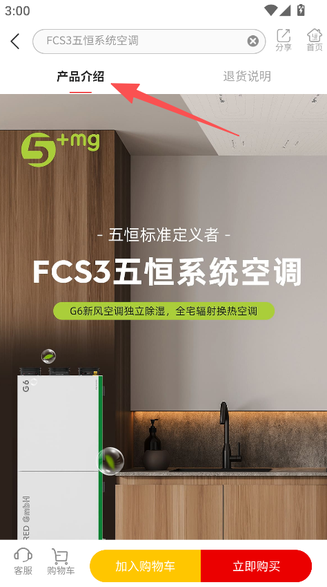 2、选择商品,如FCS3五恒系统空调,查看产品介绍。