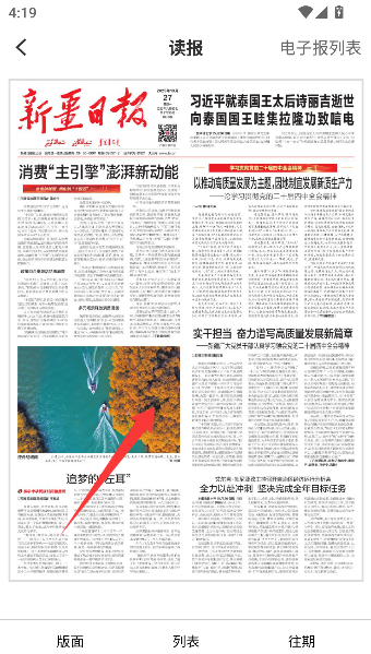 3、在阅读界面可以上下滑动查看详细报道,还能通过日期选择器查看往期的报纸内容。