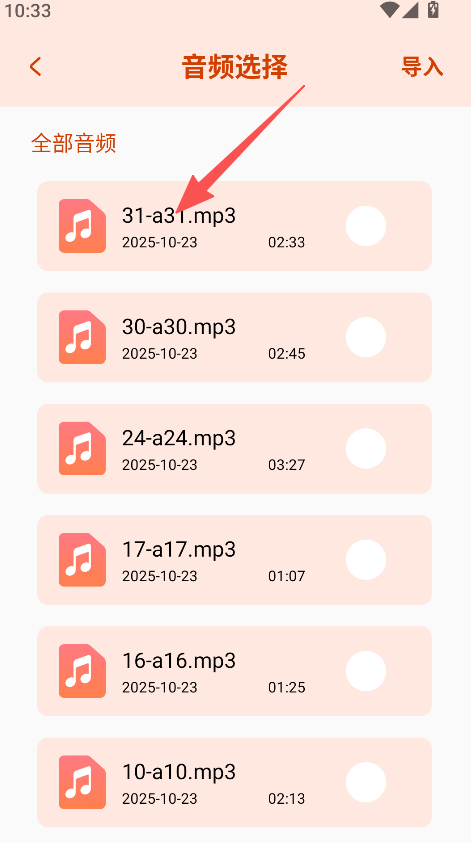 2、选择音频文件(如 31-a31.mp3),进入音频剪裁界面。