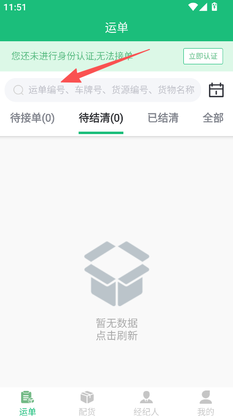 2、进入运单板块,搜索运单编号、车牌号等,查看运单状态。