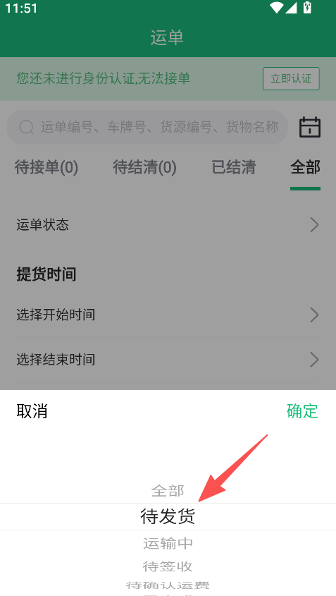 3、实现运单状态管理功能,筛选待发货、运输中等状态,从业者掌握物流全进度,运输流程管控到位。
