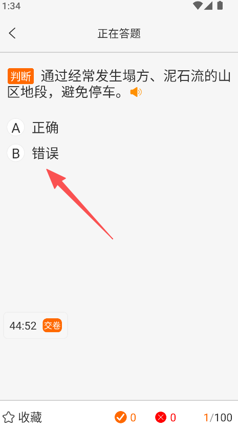 2、进入答题界面,查看题目(如判断题),选择答案。