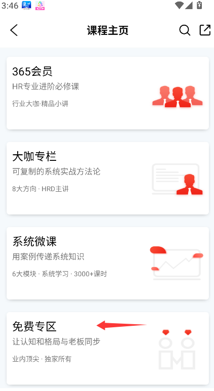 2、浏览并找到“免费专区”分类标签,点击该分类进入免费课程集合。