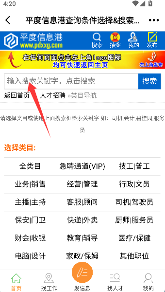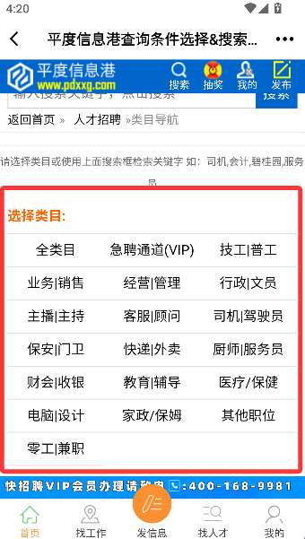 1、在《平度信息港》主页找到那个醒目的“找工作”入口,轻轻一点,仿佛推开一扇通往本地职场的求职大门。