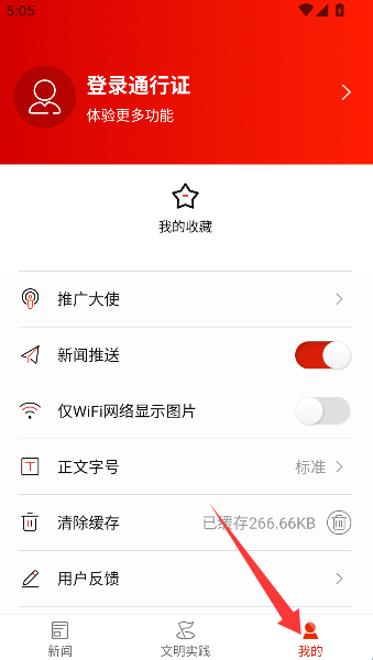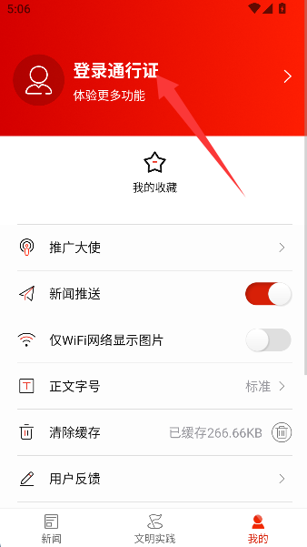 2、接着果断按下“登录通行证”这个神奇按钮,它就像一把钥匙,马上为你打开个性化资讯宝箱。