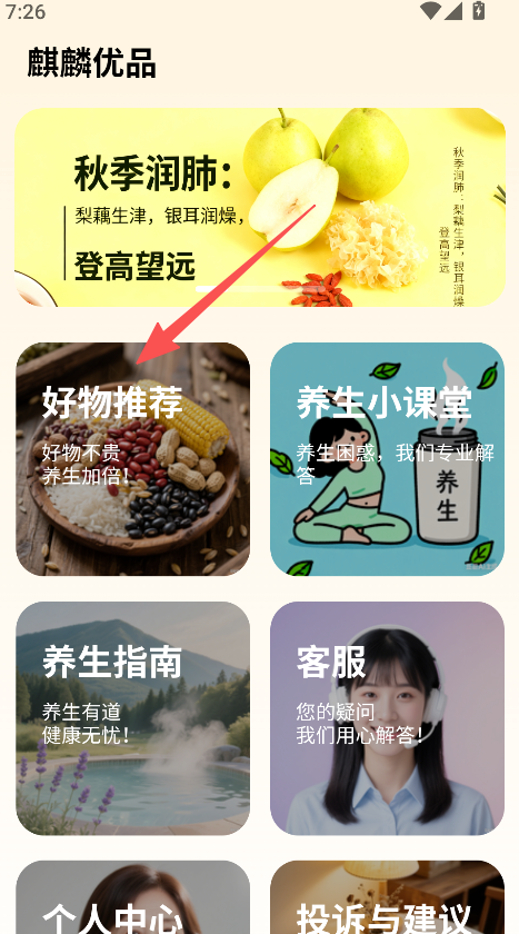 1、养生领域覆盖全,含好物推荐、养生课堂、指南,养生服务需求一站式满足,用户养生选择多样。
