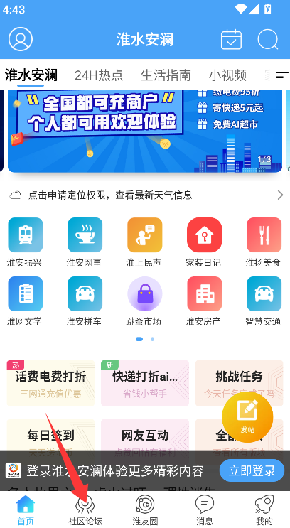 1、到并点击底部或导航栏的“社区论坛”功能入口,系统将跳转至论坛主页面,展示各类讨论板块。