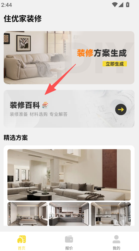 《住优家装修》是一款装修服务软件,拥有装修百科(覆盖施工准备、水电施工等专业知识)、装修方案生成、精选装修案例等功能,可解答装修准备、材料选购疑问;助力用户了解装修流程、获取设计方案,是装修学习与规划的实用工具。