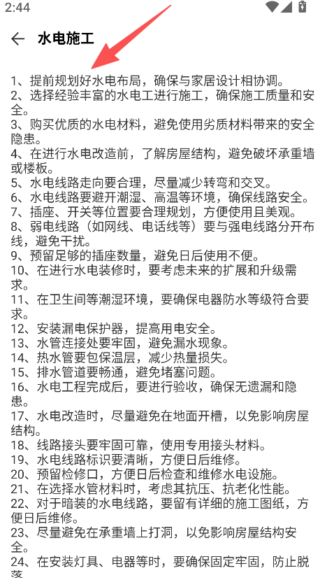 3、查看水电施工知识(如布局规划、材料选购等),学习装修要点。