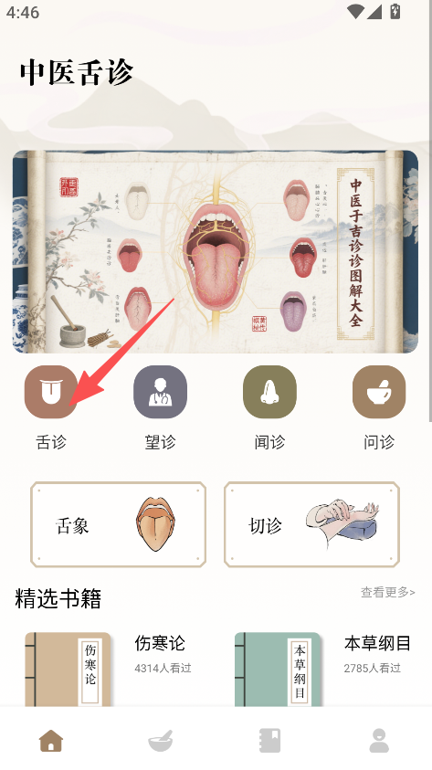 1、打开软件,点击舌诊,进入舌诊内容界面。