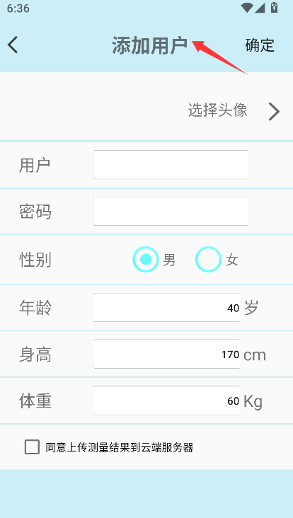 1、在测量主页面点击顶部或侧方的头像图标,即可进入设备管理与用户信息添加界面。