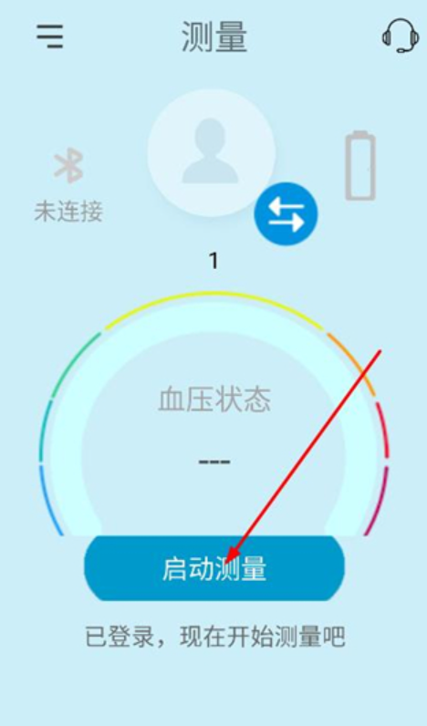2、返回到测量主页面,找到并点击明显的“启动测量”按钮,设备开始工作并进行血压检测。