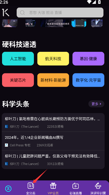 1、在知识分享类应用的主界面导航栏中,进入该专题页面,浏览相关领域的内容合集。