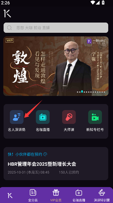 2、点击“名人演讲局”这一分类选项,系统将跳转至名为“一刻演讲局”的专属页面。