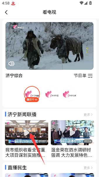 1、轻点“看电视”图标,就像推开一扇通往济宁本地频道的大门,各种新闻、戏曲和方言节目任君挑选,轻松瘫坐在沙发里。