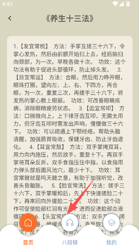 3、查看《养生十三法》的具体方法与功效,学习养生知识。