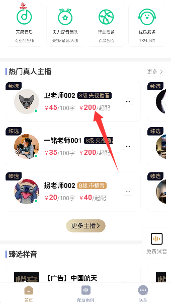 2、浏览并挑选符合需求的配音老师,其个人主页通常展示有样音、简介及擅长风格等信息。