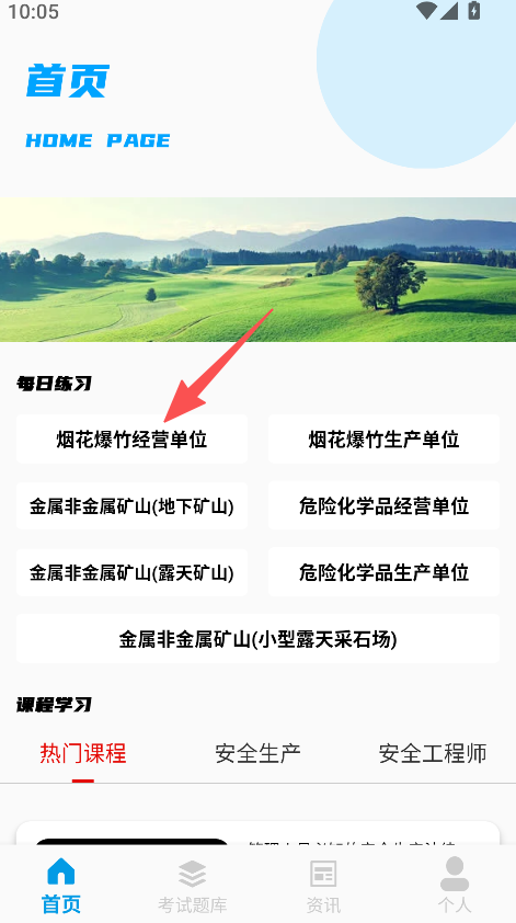 1、打开软件,点击每日练习分类(如烟花爆竹经营单位),进入练习界面。