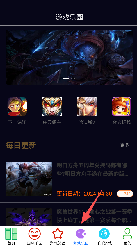 1、打开软件,点击游戏乐园,进入游戏资讯界面。