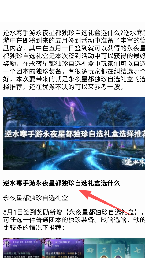2、浏览每日更新的资讯列表,选择感兴趣的资讯(如逆水寒手游礼盒选择)。