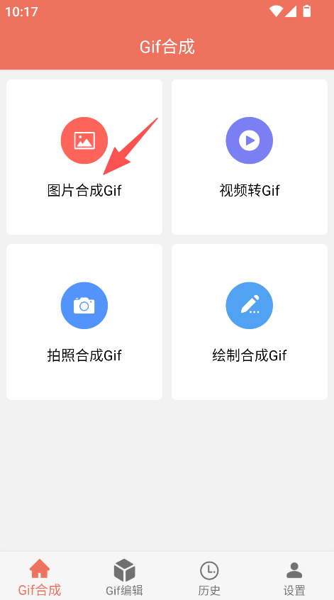 1、功能分类清晰,GIF合成、编辑、历史、设置板块明确,从制作到管理流程顺畅,操作简便。