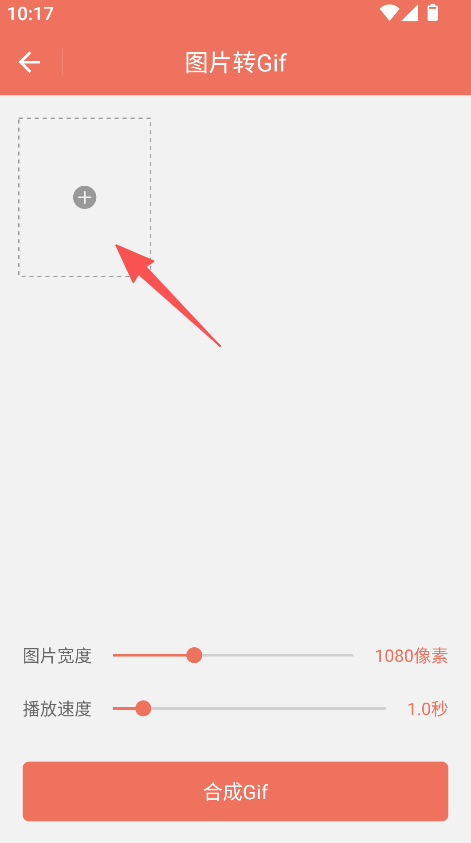 2、添加图片,调整图片宽度、播放速度,点击合成GIF。
