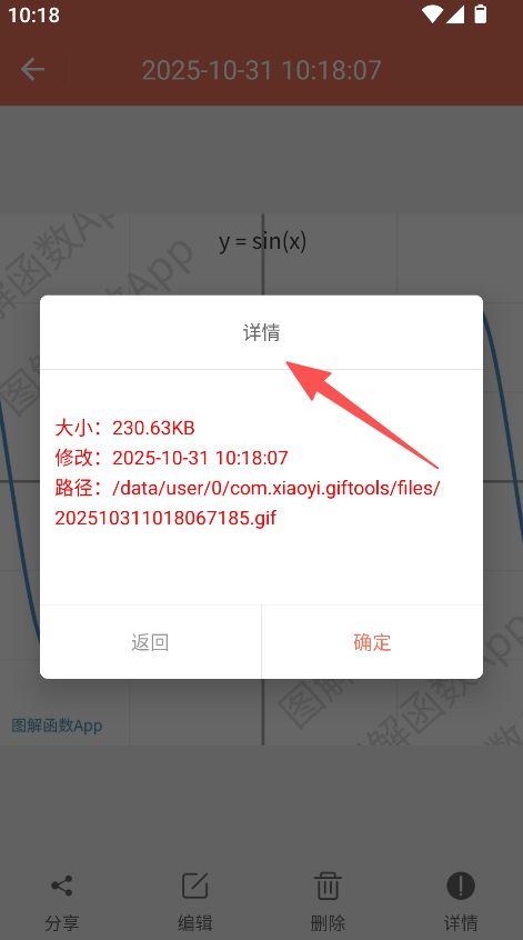 3、合成后点击详情,查看GIF大小、路径等信息。