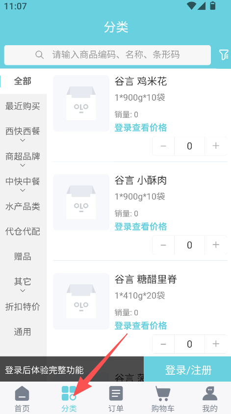 1、具备分类浏览功能,按西快西餐、商超品牌等分类展示冻品,用户快速找对应类别,冻品选择高效。
