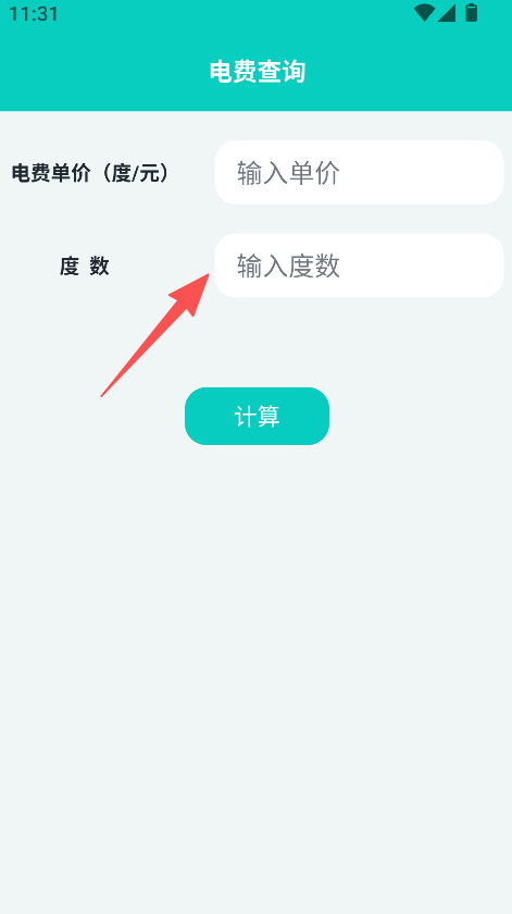 2、输入电费单价和度数,点击计算,获取电费金额。