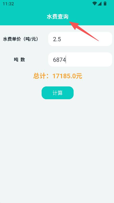 3、点击水费查询,输入水费单价和吨数,点击计算,获取水费金额。
