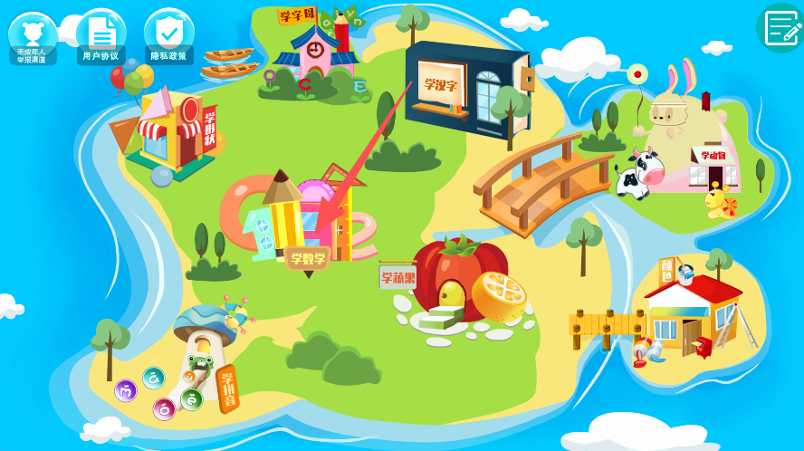3、界面设计卡通,以趣味岛屿、卡通角色呈现板块,幼儿视觉体验佳,使用时兴趣浓厚。