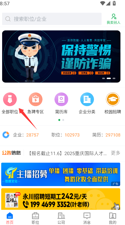 1、找到并点击"全部职位"分类入口,即可进入涵盖所有招聘岗位的列表页面。